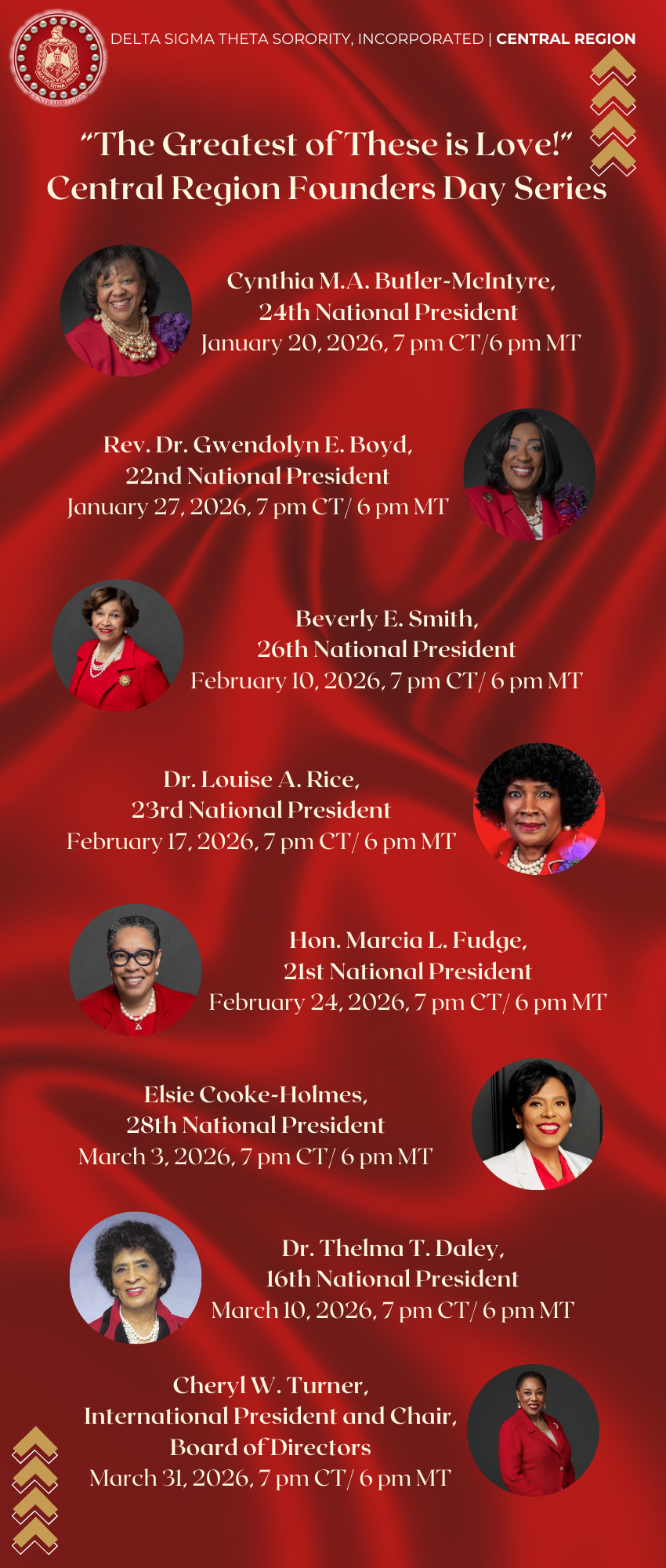 We are pleased to announce the Central Region Founders Day Series, "The Greatest of These is Love." All of our esteemed Past National Presidents will bring us messages detailing how leading with love shaped their leadership decisions throughout their presidencies. We are also thrilled to announce that our International President and Chair, Board of Directors, […]