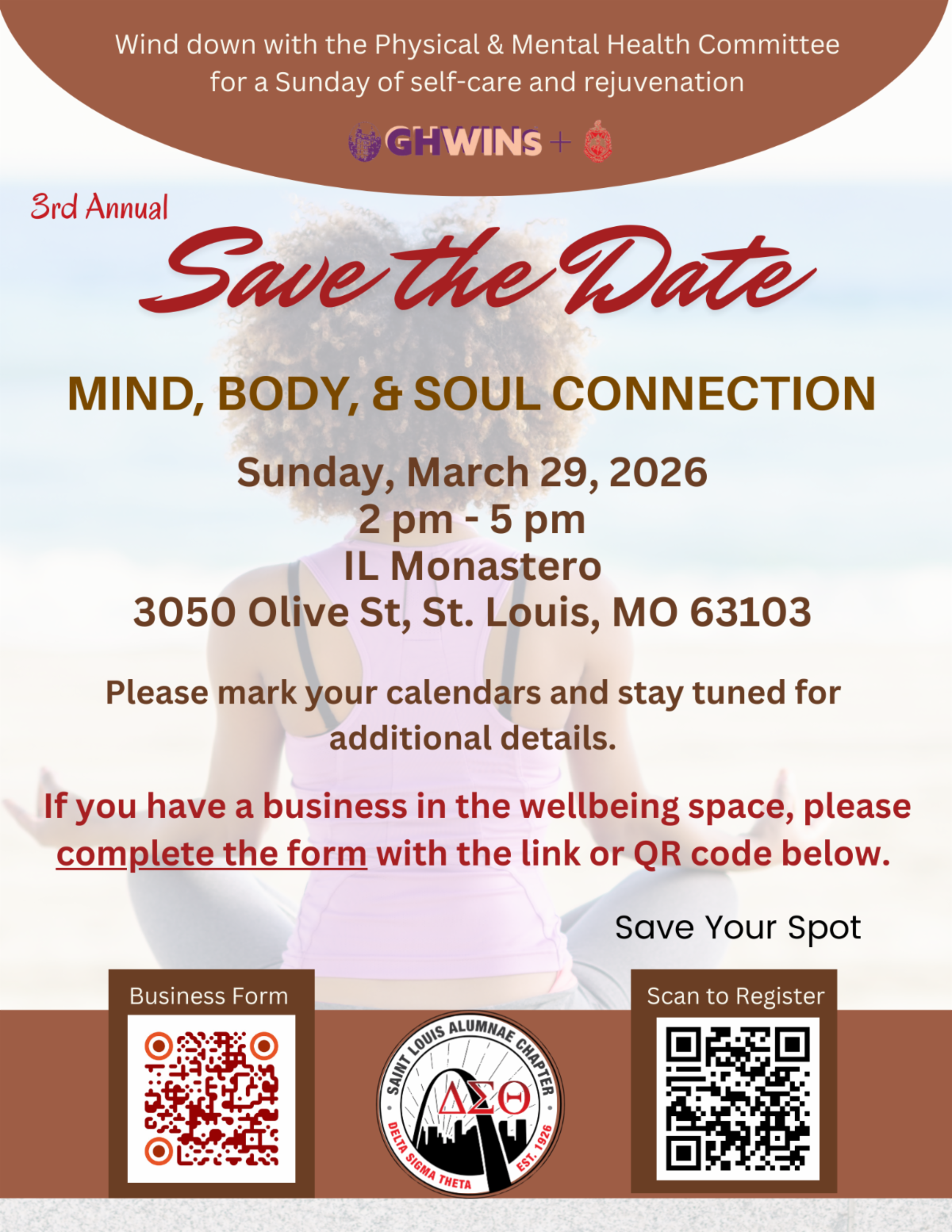 Wind down with the Physical & Mental Health Committee for a Sunday of self-care and rejuvenation Register here: https://form.jotform.com/260116400348143